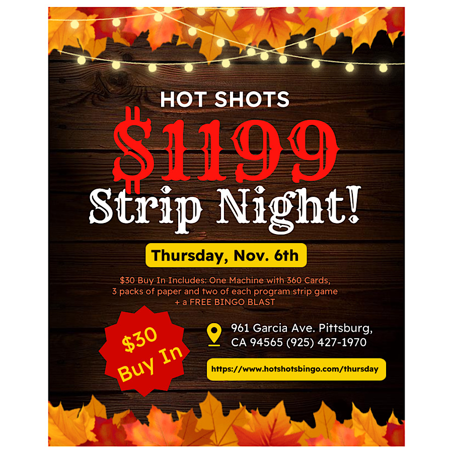 We play 5 Bingo Games, 5 Strip Games, and 3 Specials.